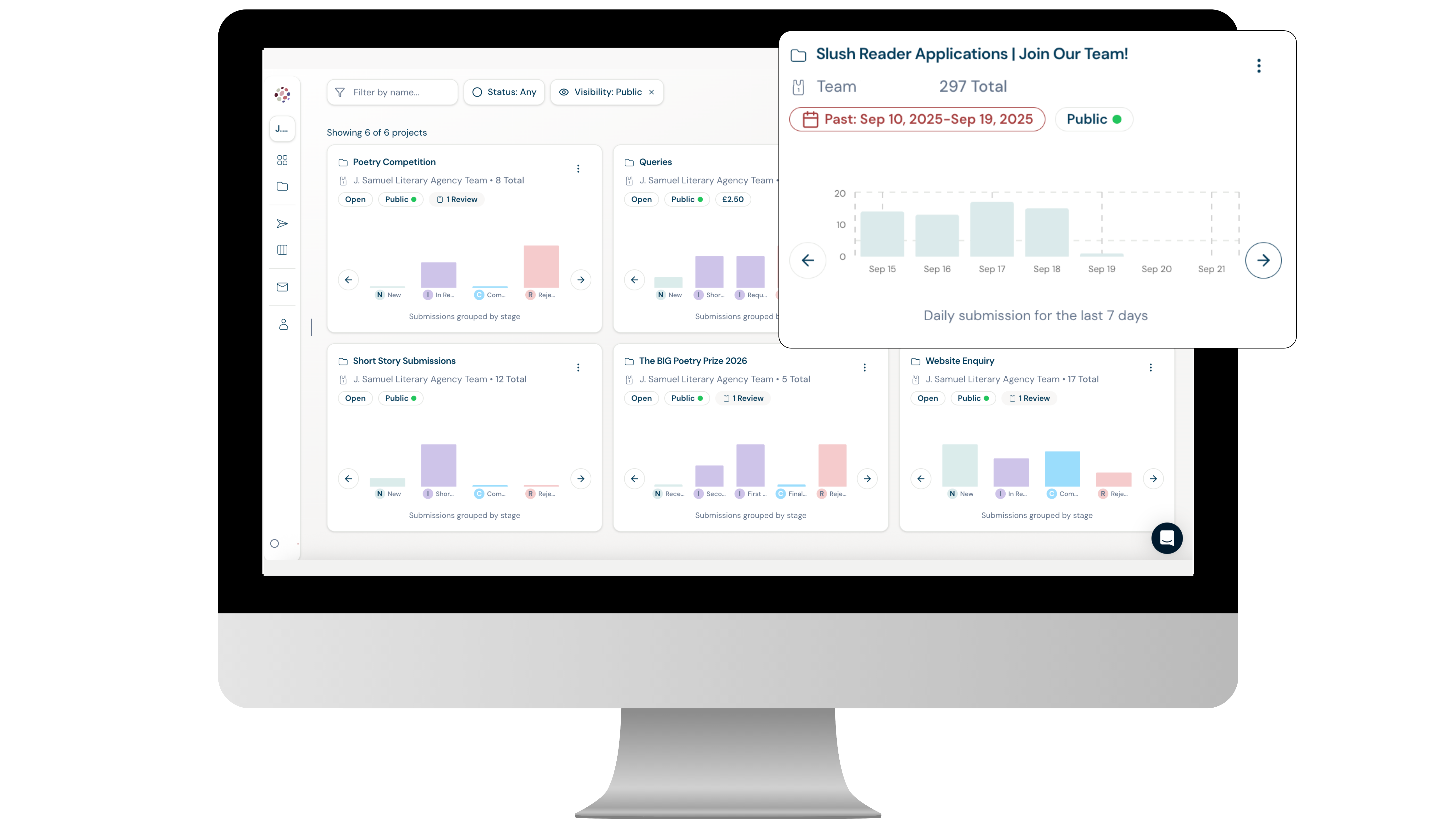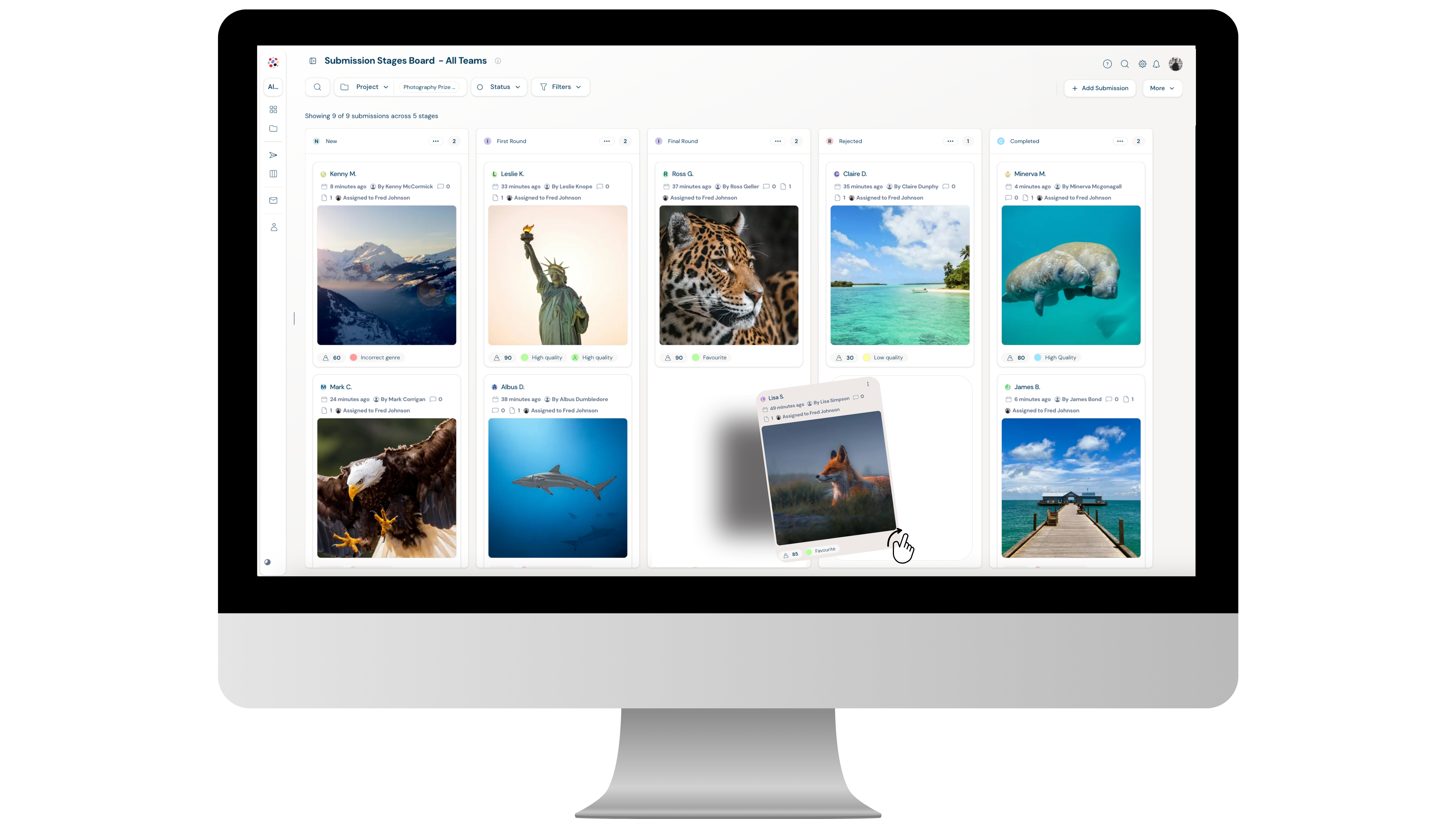 • Visual kanban boards to track submissions through the journey